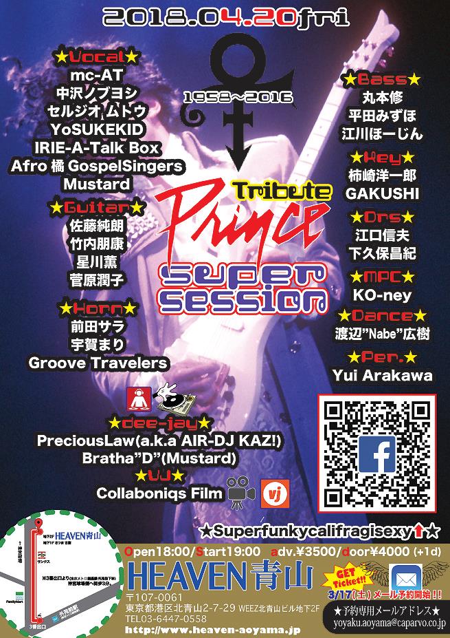 4/20ヘブン青山というライブハウスでプリンストリビュートライブがあるのですが、行かれる方いますか?プリンスはもちろん好きですが、出演者の方も好きな人がいて…
